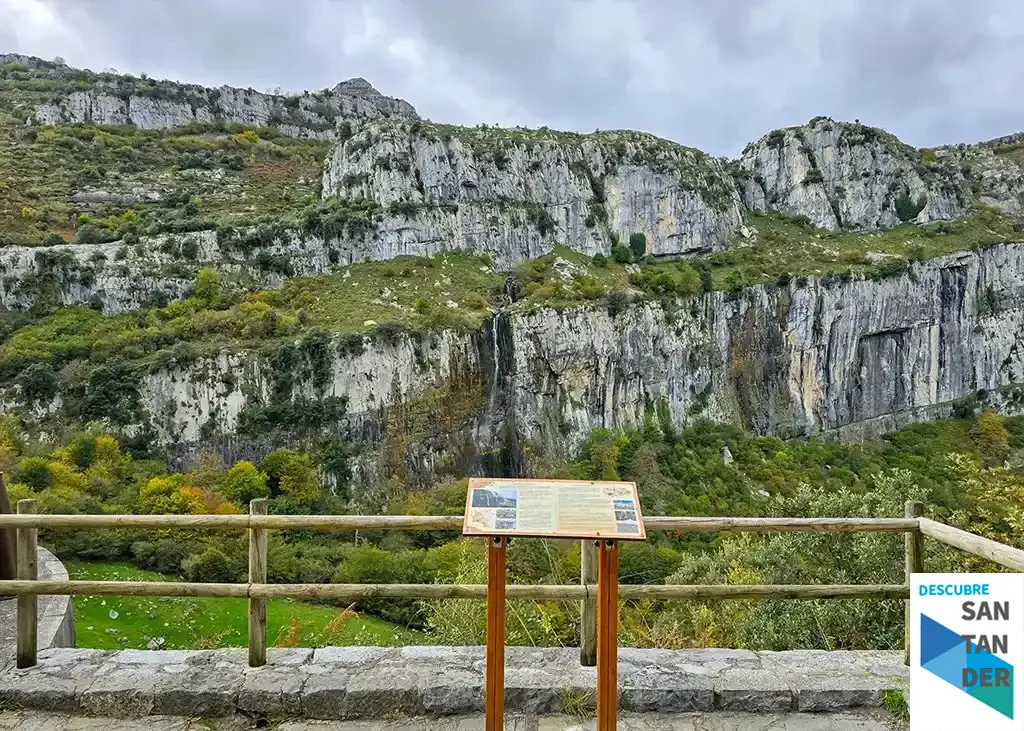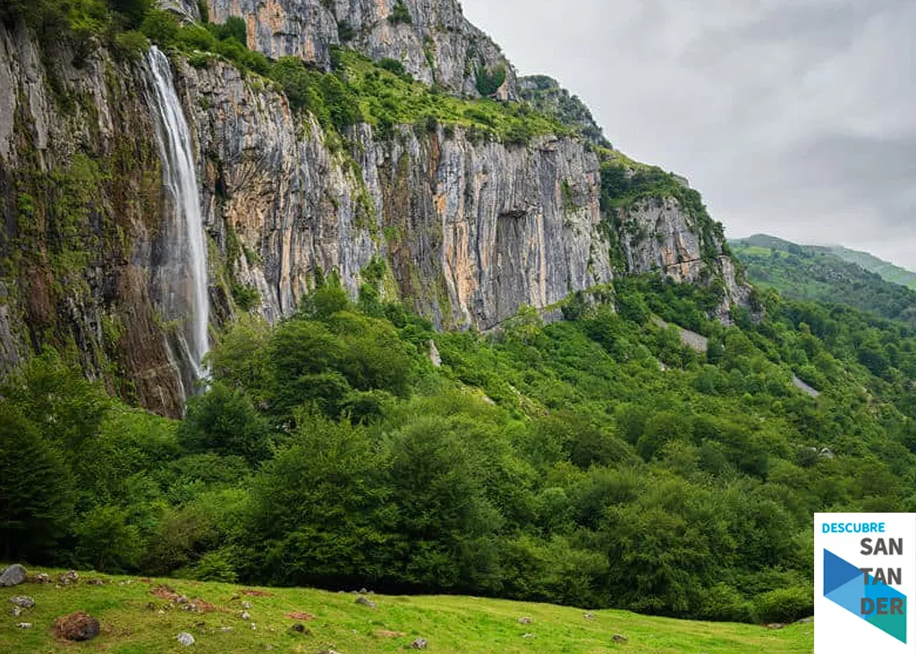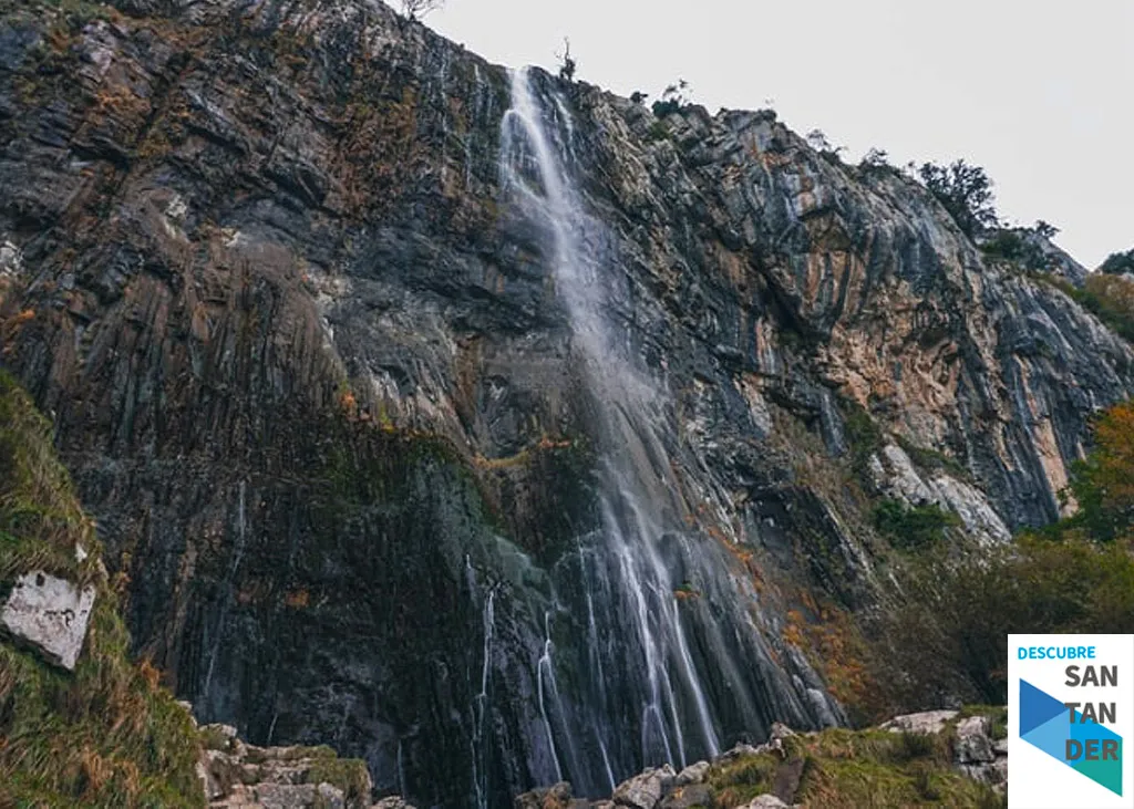 Esta cascada, una de las más altas y espectaculares de Cantabria, cae desde una gran pared de roca caliza en un entorno que parece sacado de una postal.