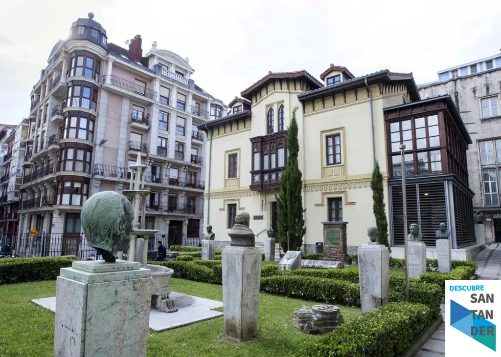 En el jardín encontramos una estatua realizada en mármol blanco por Mariano Benlliure en honor a Menéndez Pelayo, donde se localiza una placa con las primeras palabras del testamento, donde cede sus libros al ayuntamiento y da las gracias a Santander. La Biblioteca de Menéndez Pelayo se inaguró en el 1923.